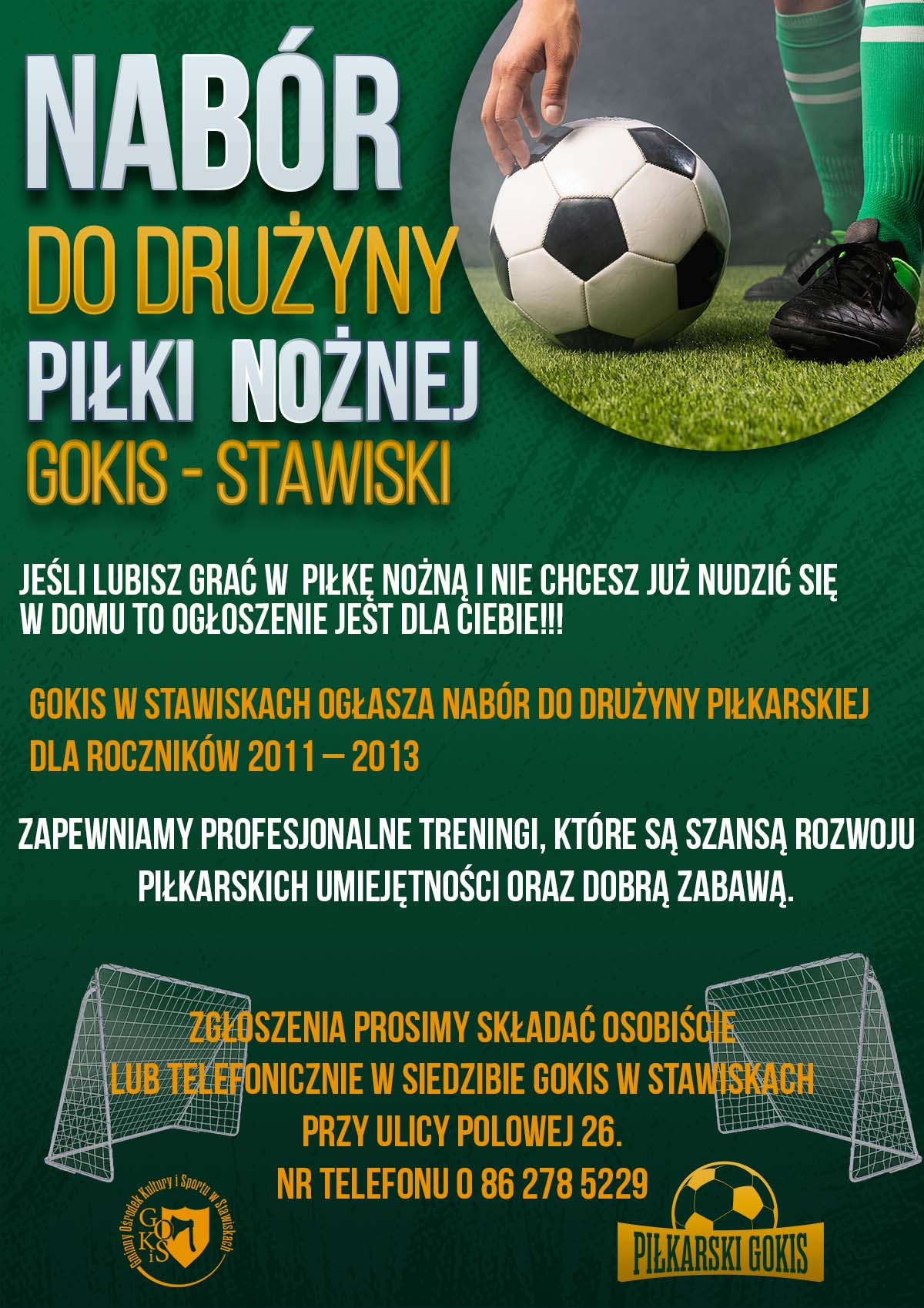 GOKiS w Stawiskach ogłasza nabór do drużyny piłkarskiej dla roczników 2011 – 2013.