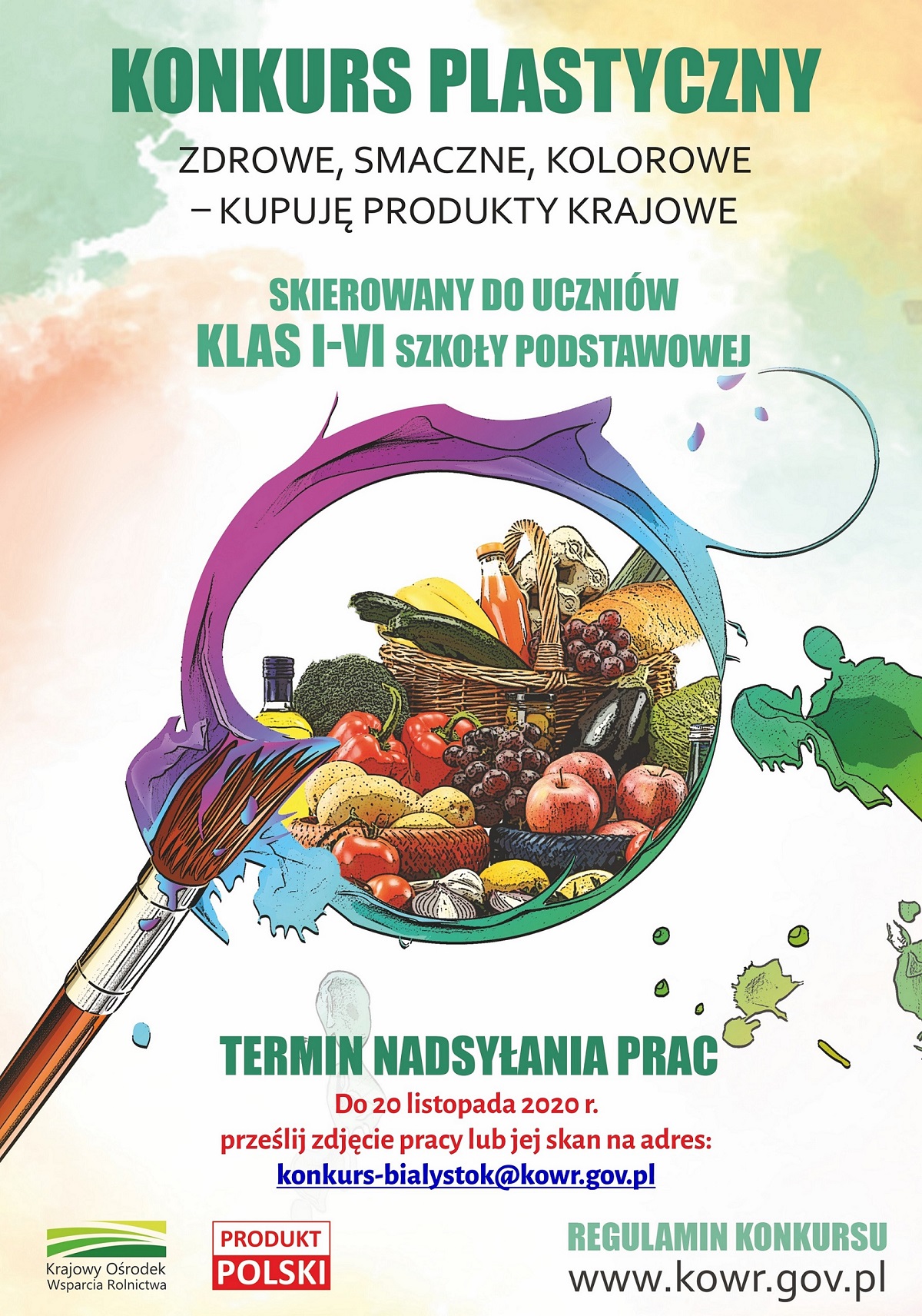 Krajowy Ośrodek Wsparcia Rolnictwa Oddział Terenowy w Białymstoku serdecznie zaprasza wszystkie chętne dzieci z terenu województwa podlaskiego do udziału w konkursie plastycznym. „Zdrowe, smaczne, kolorowe – kupuję produkty krajowe”.