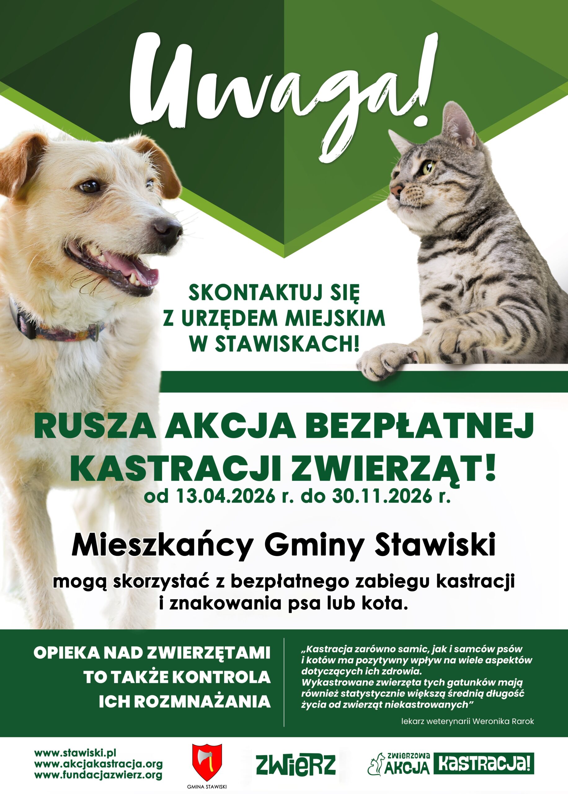 Akcja bezpłatnej kastracji zwierząt! Nawigacja wpisu Poprzedni Poprzedni wpis: Zajęcia w świetlicy GOKiSNastępny Następny wpis: Życzenia wielkanocne 2026 Może Ci się spodobać: Piknik z LGD Ogólnopolski konkurs patriotyczny „Wolność zaklęta w piosence” Plebiscyt Edukacyjny – Gala w Muzeum Podlaskim w Białymstoku Code Week 2023- Europejski Tydzień Kodowania
